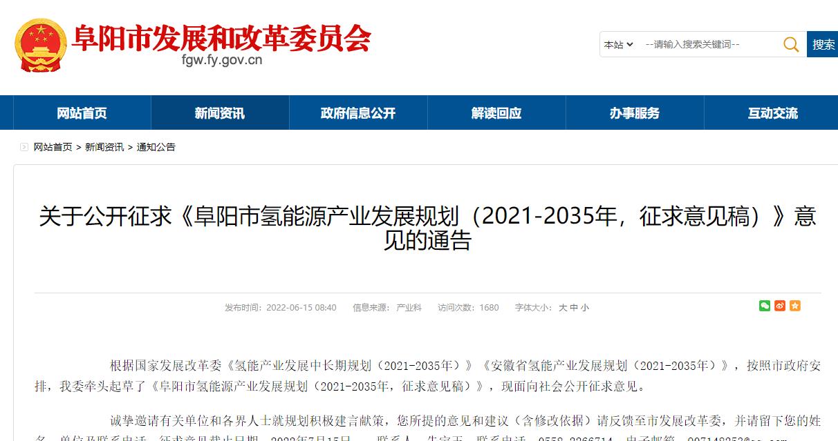 打造長三角最大的氫源供應(yīng)基地!《阜陽市氫能源產(chǎn)業(yè)發(fā)展規(guī)劃(2021-2035年,征求意見稿)》發(fā)布