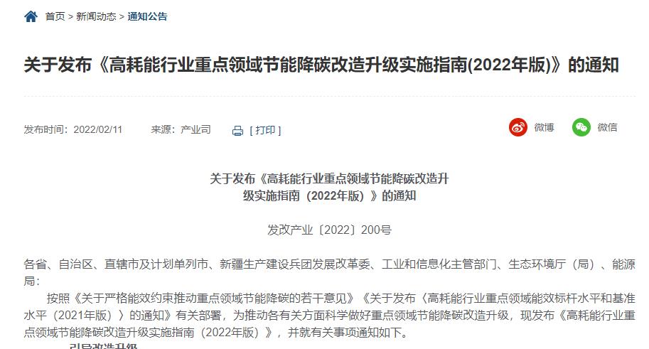 涉及氫能領域!國家發改委發布了《高耗能行業重點領域節能降碳改造升級實施指南》