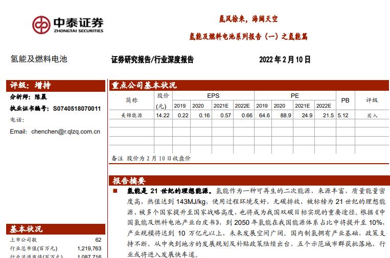 氫能作為一種可再生的二次能源,來源豐富,質量能量密度高,熱值143MJ/kg,使用環境友好,無碳排放。根據《中國氫能及燃料電池產業白皮書》,到2050年,氫能在中國能源體系中的比重將提高到10%,產業規模將達到10萬億元以上,未來發展空間廣闊。從中央到地方的發展規劃和補貼政策相繼出臺,五個示范城市群已獲批實施,行業可能進入發展快車道。
