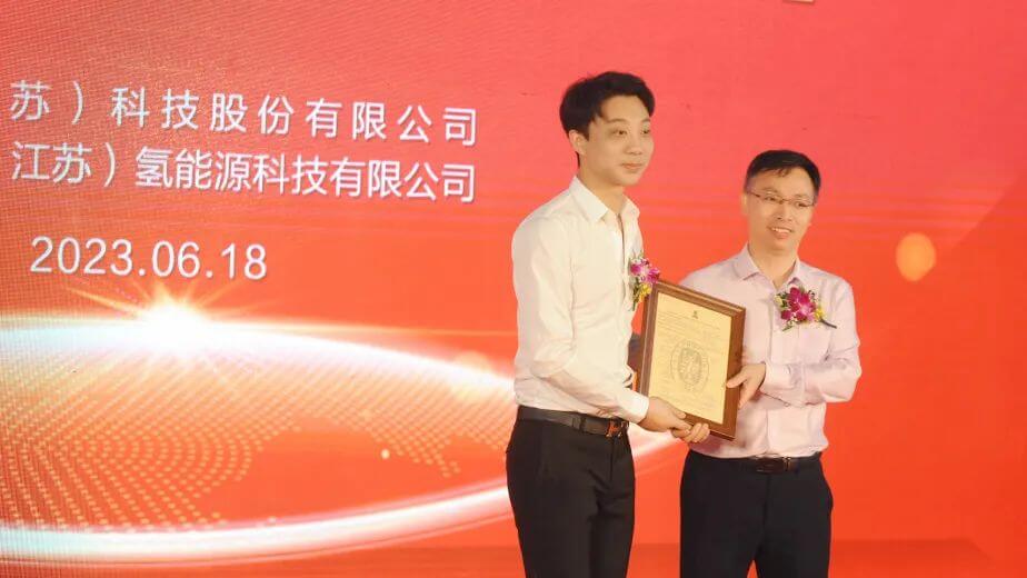 2023年6月18日,必維集團氫能業務總監劉忠勇先生受邀參加宏澤海槿(江蘇)氫能源科技有限公司水制氫電解槽產品發布暨下線儀式,并授予電解槽能效證書,此證書為全國首張常壓堿性水電解槽能效證書。