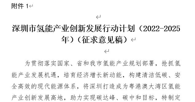 18項政策,規模達到500億元!深圳市氫能產業創新發展行動計劃(2022-2025年)(征求意見稿)發布!