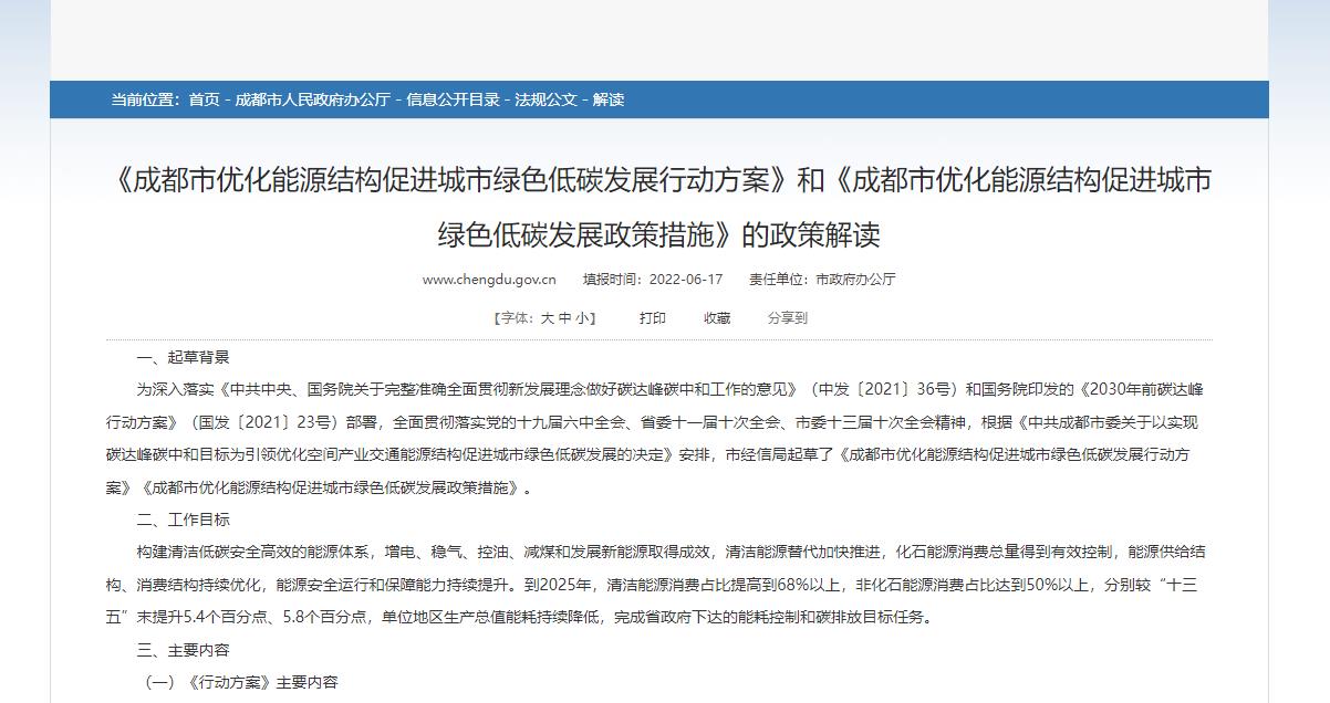 《成都市優化能源結構促進城市綠色低碳發展行動方案》和《成都市優化能源結構促進城市綠色低碳發展政策措施》的政策解讀