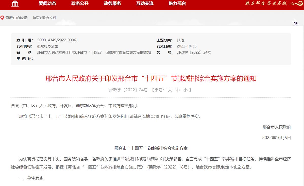 10月5日,邢臺(tái)市人民政府發(fā)布關(guān)于印發(fā)邢臺(tái)市“十四五”節(jié)能減排綜合實(shí)施方案的通知