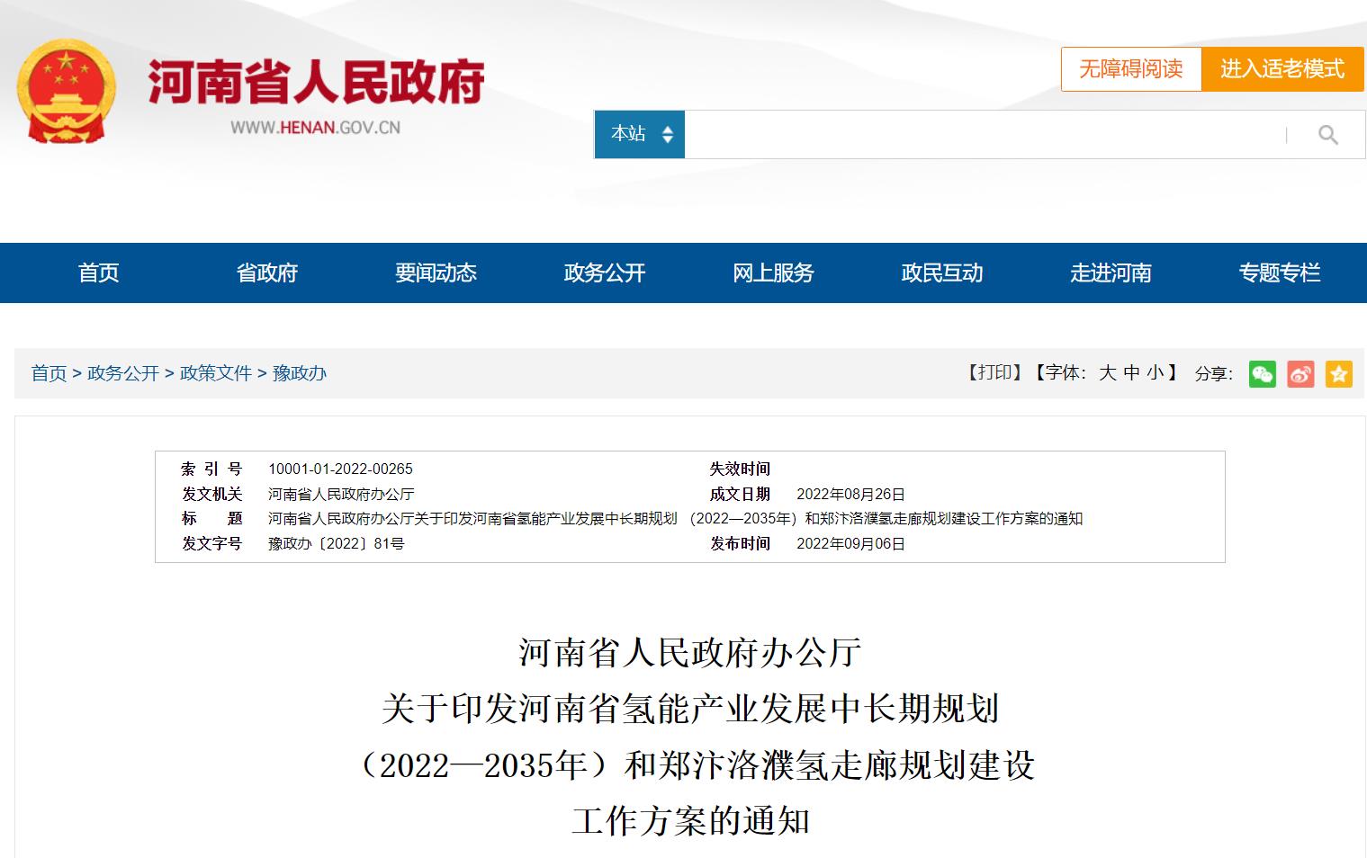 官方政策解讀:《河南省氫能產(chǎn)業(yè)發(fā)展中長期規(guī)劃(2022-2035年)》《鄭汴洛濮氫走廊規(guī)劃建設(shè)工作方案》