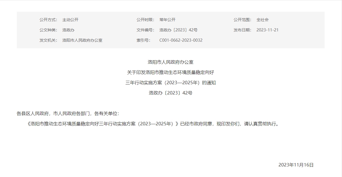 《洛陽(yáng)市推動(dòng)生態(tài)環(huán)境質(zhì)量穩(wěn)定向好三年行動(dòng)實(shí)施方案(2023-2025年)》