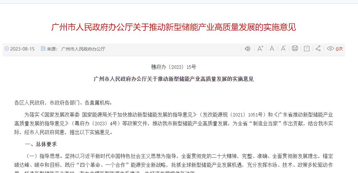 氫啟未來網獲悉,8月15日,廣州市人民政府辦公廳發布關于推動新型儲能產業高質量發展的實施意見。