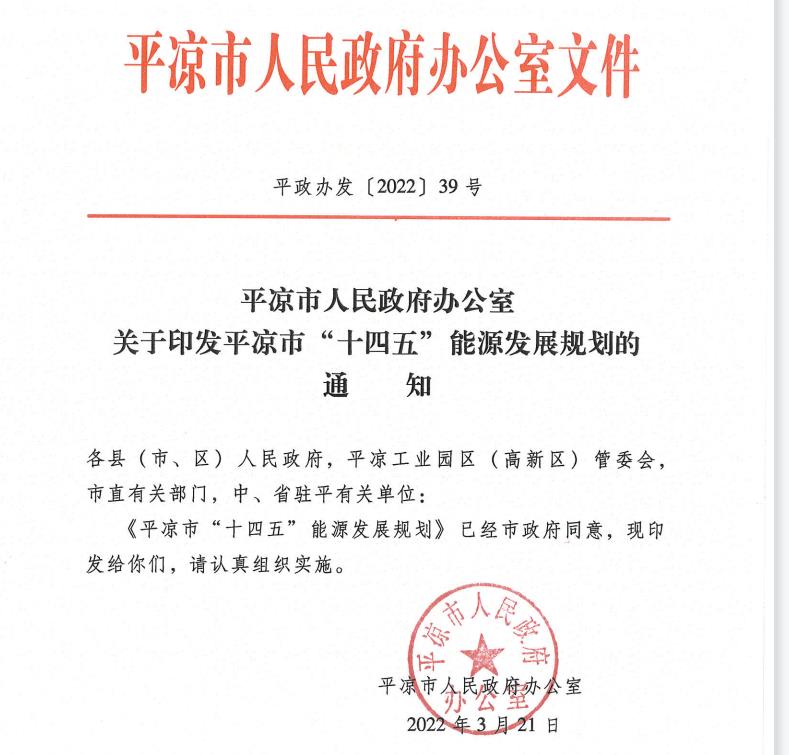 《平?jīng)鍪?ldquo;十四五”能源發(fā)展規(guī)劃》解讀