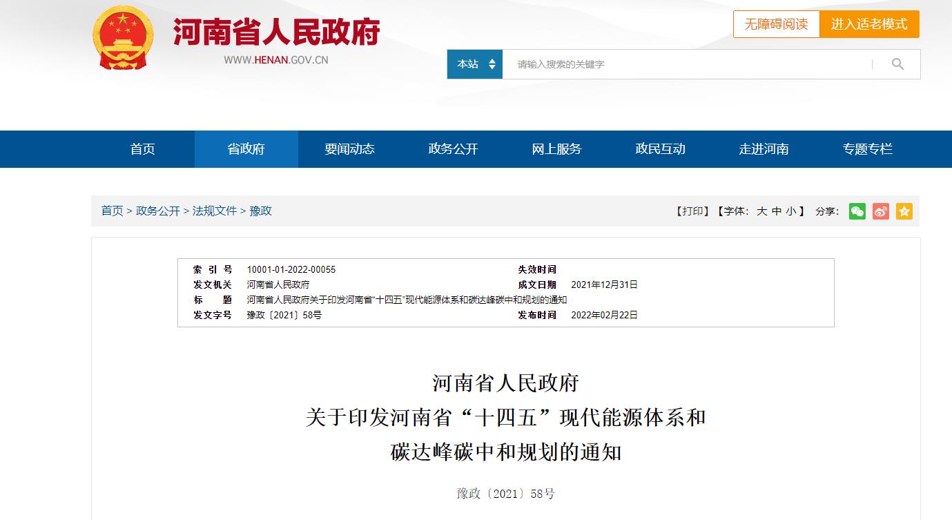 河南省人民政府關(guān)于印發(fā)《河南省“十四五”現(xiàn)代能源體系和碳達(dá)峰碳中和規(guī)劃》的通知