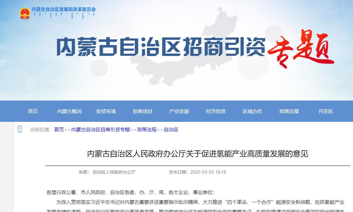 內(nèi)蒙古自治區(qū)人民政府辦公廳關(guān)于促進(jìn)氫能產(chǎn)業(yè)高質(zhì)量發(fā)展的意見