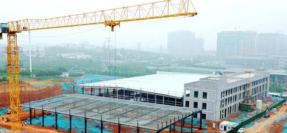 7月12日,位于澗西區的東旭氫能電機及高端裝備產業園項目建設現場,工人正加緊施工。?