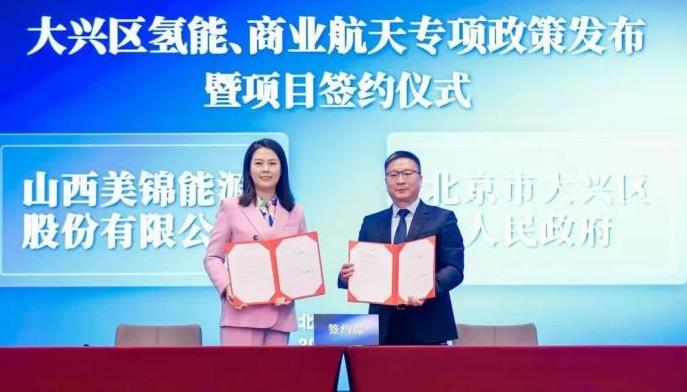 4月9日下午,大興區舉行了氫能、商業航天專項政策發布和項目簽約儀式。本次集中簽約是2022年大興區推進“兩區”建設邁上新臺階的標志性活動。山西美錦能源股份有限公司應邀作為重點簽約企業出席發布會。大興區政府區委副書記、區長劉學亮、美錦能源副總裁姚錦麗分別代表雙方簽約。美錦能源大興項目包括年產5000臺燃料電池叉車項目,可填補北京類似項目的部分空白。