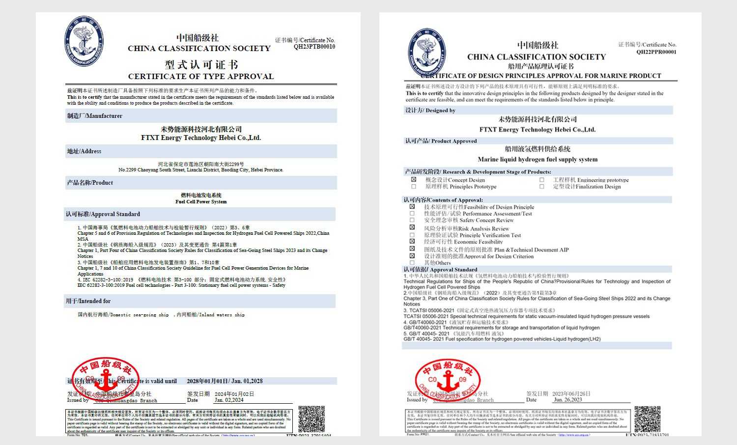 此前,未勢能源船用燃料電池發(fā)電系統(tǒng)、船用液氫供給系統(tǒng)已相繼獲得中國船級社(CCS)認(rèn)證,經(jīng)過中國船級社(CCS)嚴(yán)格的審核,并符合中國海事局《氫燃料電池動力船舶技術(shù)與檢驗暫行規(guī)則》及CCS相關(guān)標(biāo)準(zhǔn)要求。