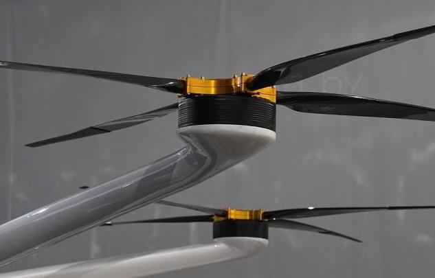 那個屋頂有六個旋轉翼,看起來像是超大型的無人機,最多可以容納五個人。