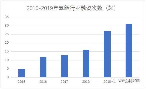 根據香橙會氫能數據庫統計,氫燃料電池行業自2015年以來,共發生融資事件104起,分別為:2015年5起,2016年12起,2017年13起,2018年16起,2019年27起,2020年31起,行業融資案例持續增加。