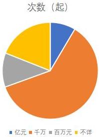 自2015年開始,氫能產業在國家一系列政策和重大項目的支持下,我國相關技術取得了一定的發展,但是整個行業剛起步階段,融資規模普遍很小,基本以千萬元級別為主。自2016年億華通取得1億元融資后,行業共有9起億元融資事件,64起千萬級別融資,12起融資金額為百萬級別,20起融資事件金額不詳。未來隨著產業的發展成熟,融資金額會不斷變大,億元融資事件越來越多。