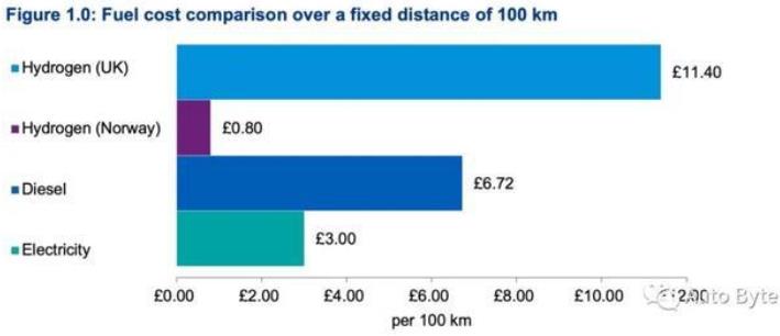 加利福尼亞能源委員會(huì)的一項(xiàng)研究估計(jì),到2030年,每公斤氫能的成本可以從14—18美元降低到6.6—8.25美元,與現(xiàn)在的柴油價(jià)格相當(dāng)。