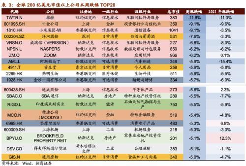 過(guò)去一周領(lǐng)跌的200億美元以上公司也主要集中在信息技術(shù)領(lǐng)域。多只熱門(mén)股票出現(xiàn)大幅度回調(diào),如Zoom、NASPERS、VERISIGN等。