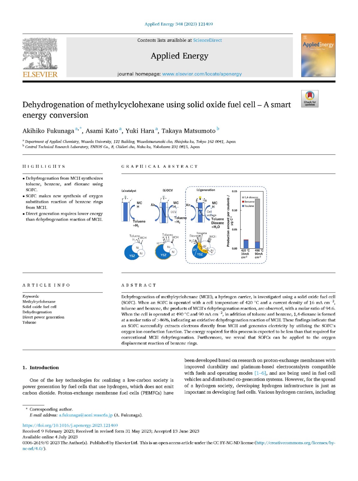 MCH是一種有機氫化物,具有液態(tài)性、低毒性以及高氫密度等優(yōu)點,因此可以安全有效地運輸和儲存氫。然而,傳統(tǒng)的MCH催化脫氫反應(yīng)需要巨大的能量,且耐久性較差。為此,早稻田大學的研究團隊試圖尋找一種更高效、環(huán)保的方法來利用MCH產(chǎn)生電能。