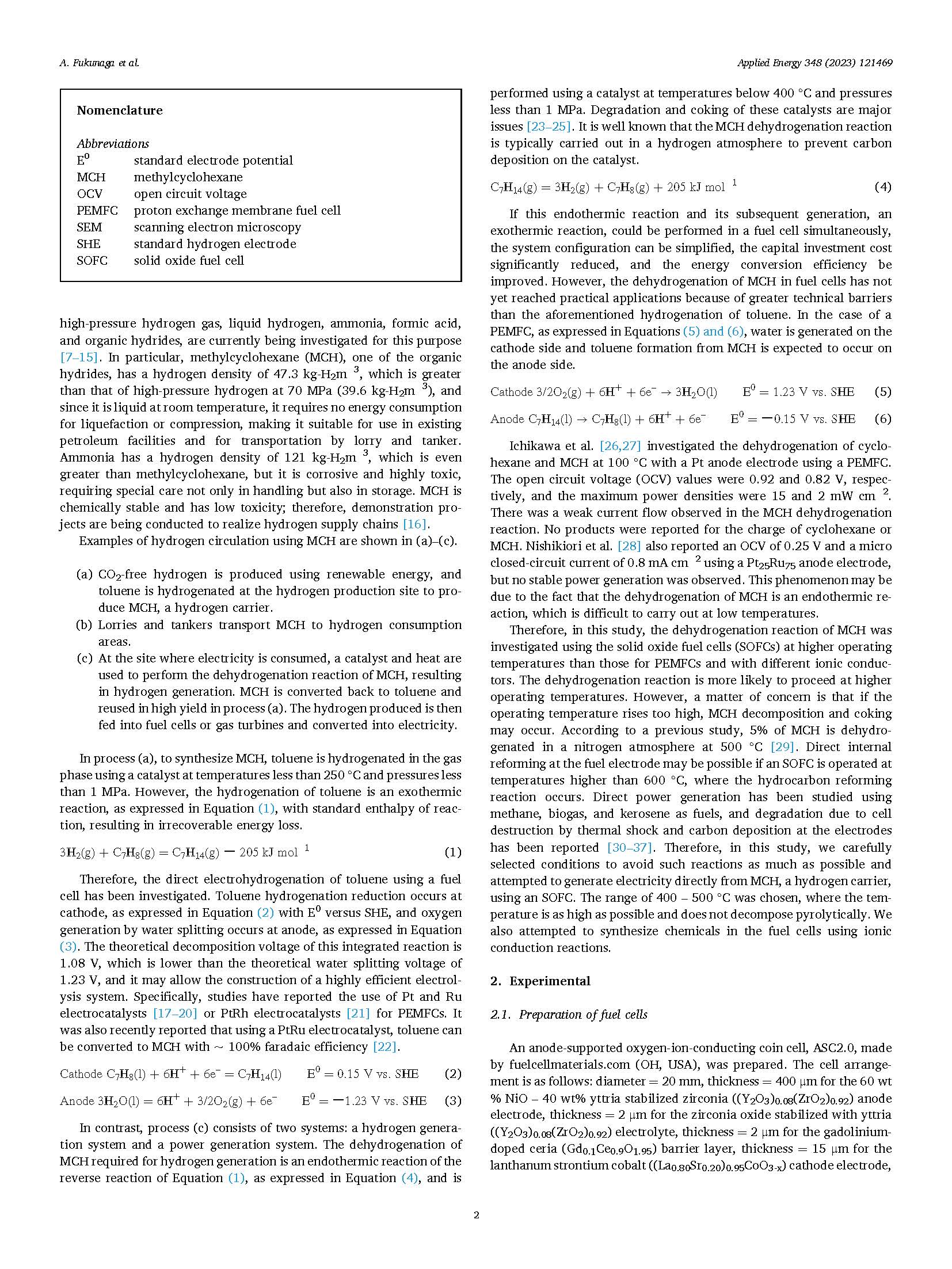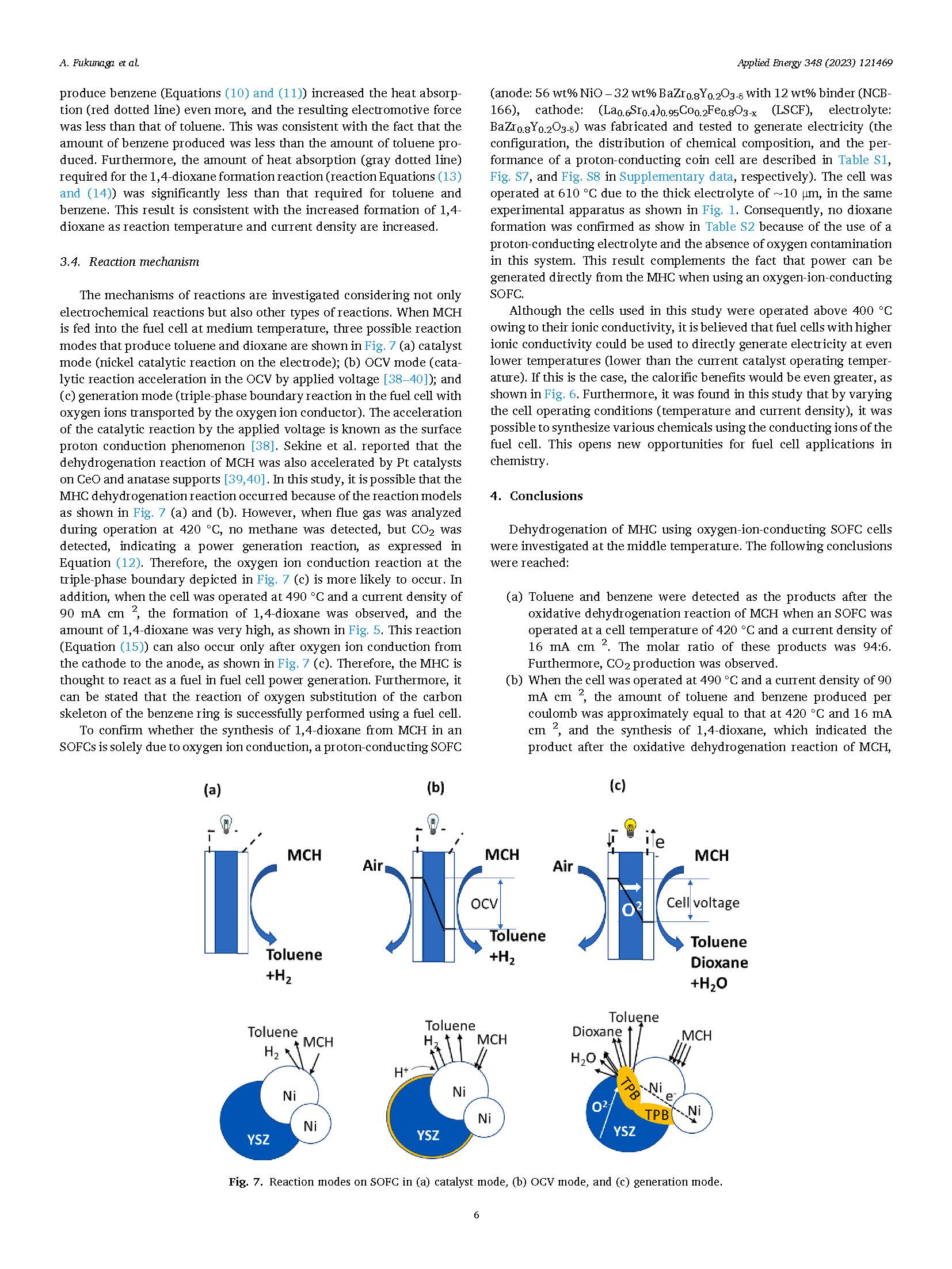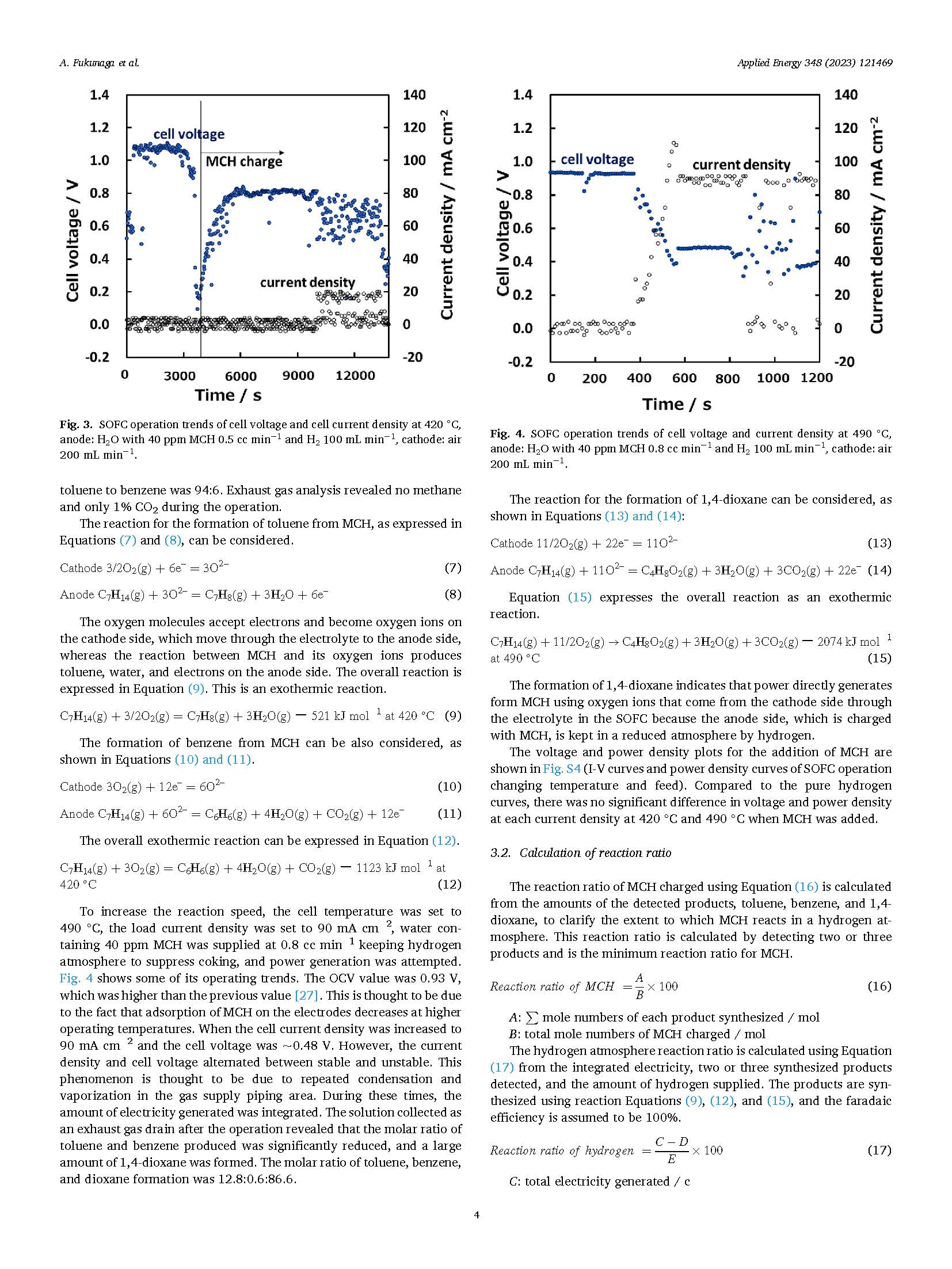 研究小組使用陽極支持的SOFC進行實驗,該設(shè)備的工作溫度高于聚合物電解質(zhì)燃料電池。在實驗過程中,MCH與SOFC中的導(dǎo)電氧離子發(fā)生反應(yīng)發(fā)電,實現(xiàn)了從有機氫化物到電能的直接轉(zhuǎn)換。這意味著MCH可以發(fā)電,并且直接發(fā)電所需的能量比傳統(tǒng)的MCH催化脫氫反應(yīng)所需的能量要少。
