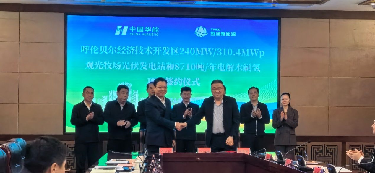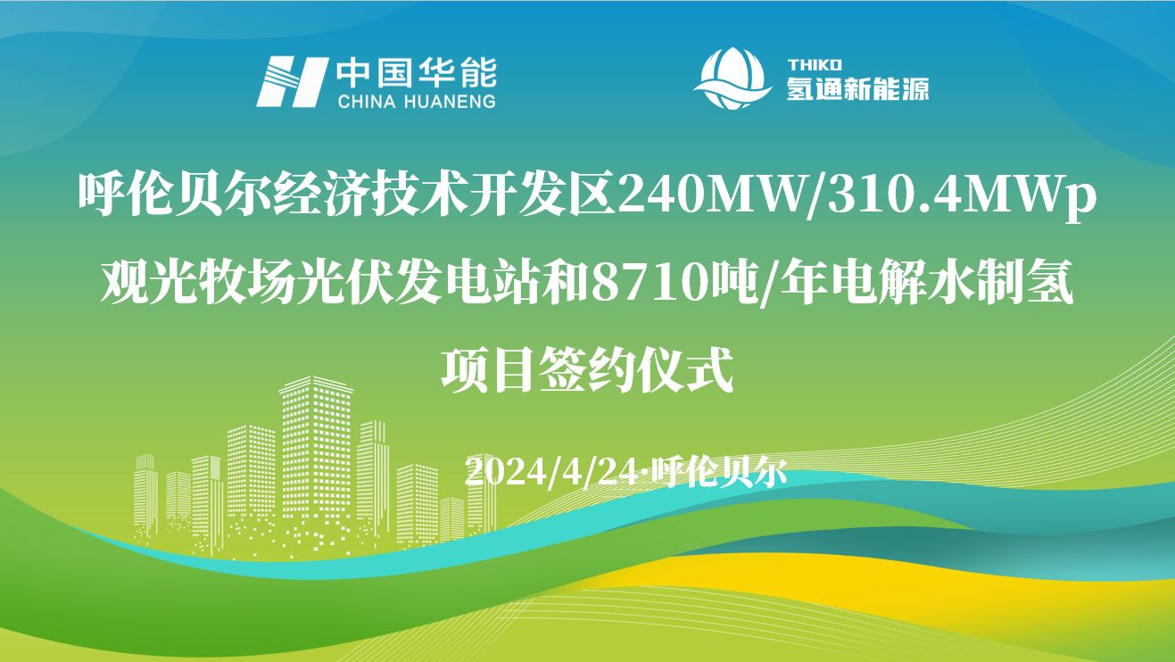 2024年4月24日下午,呼倫貝爾經(jīng)濟(jì)技術(shù)開發(fā)區(qū)240MW/310.4MWp觀光牧場(chǎng)光伏發(fā)電站和8710噸/年電解水制氫項(xiàng)目簽約儀式在呼倫貝爾舉行。氫通(上海)新能源科技有限公司董事長(zhǎng)兼CEO任亞輝、華能新能源股份有限公司廣東分公司黨委書記張建軍代表雙方公司進(jìn)行簽約。呼倫貝爾市市委副書記、市長(zhǎng)及永乾、市委常委、常務(wù)副市長(zhǎng)胡兆民、華能新能源股份有限公司黨委副書記、總經(jīng)理趙建勇、市政府秘書長(zhǎng)徐景睿、市能源局局長(zhǎng)何偉、呼倫貝爾經(jīng)開區(qū)黨工委書記、管委會(huì)主任關(guān)繼峰、氫通(上海)新能源科技有限公司執(zhí)行副總裁梁云紅見證簽約,儀式由市政府副秘書長(zhǎng)孫立峰主持。