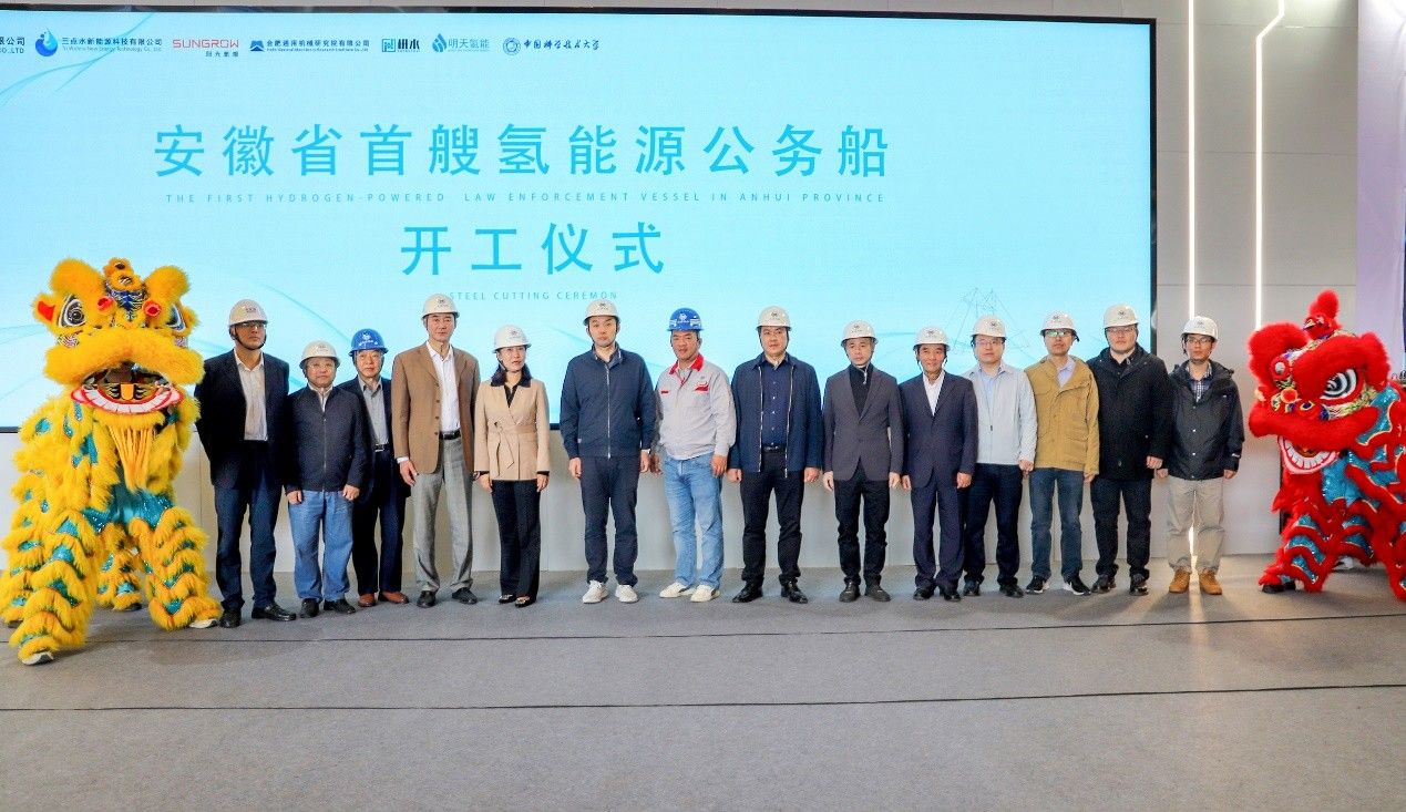 11月6日,安徽省首艘氫能源公務船舉行開工儀式,省發改委產業發展處處長傅海峰、省工信廳船舶處副處長付娜、明天氫能公司及項目聯合體相關單位負責人出席儀式。