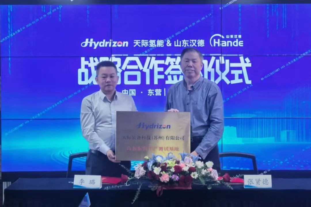2月28日,天際氫能科技(北京)有限公司與漢德能源設備有限公司正式簽署戰略合作協議,并舉行“天際氫能東營生產基地”揭牌儀式。雙方宣布通過資源互補、協同創新,共同構建“研發-制造-市場”全鏈條協同模式,加速推進氫能裝備規?;瘧门c全球化布局。