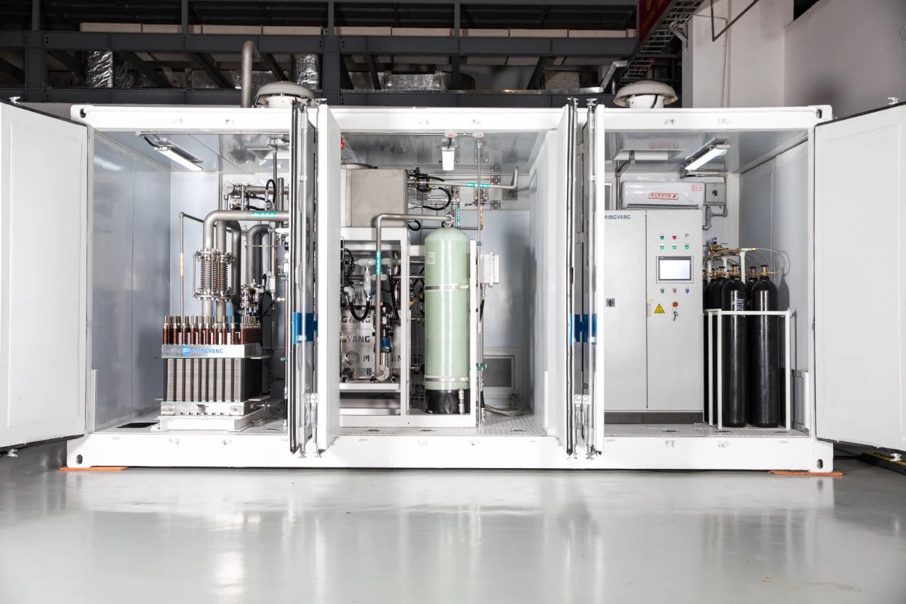移動(dòng)式柔性PEM制氫站采用全功能集成式設(shè)計(jì),通水通電即可高效制氫。示范項(xiàng)目首次實(shí)現(xiàn)PEM制氫與風(fēng)力發(fā)電機(jī)組的波動(dòng)性電力直聯(lián),無需依賴傳統(tǒng)電網(wǎng)或大規(guī)模儲(chǔ)能配套,功率調(diào)節(jié)范圍覆蓋5%~130%;模塊化結(jié)構(gòu)支持快速組裝,可靈活部署于山地、近海等復(fù)雜場(chǎng)景,產(chǎn)生氣體純度達(dá)到5N級(jí),滿足氫燃料電池車輛及其他后端應(yīng)用場(chǎng)景需求。