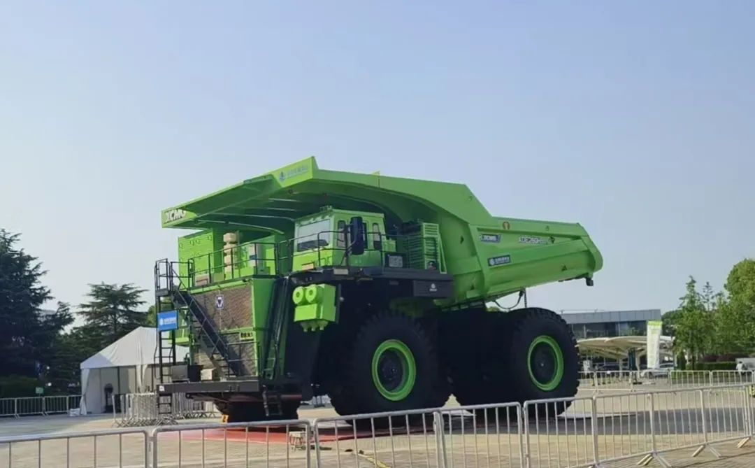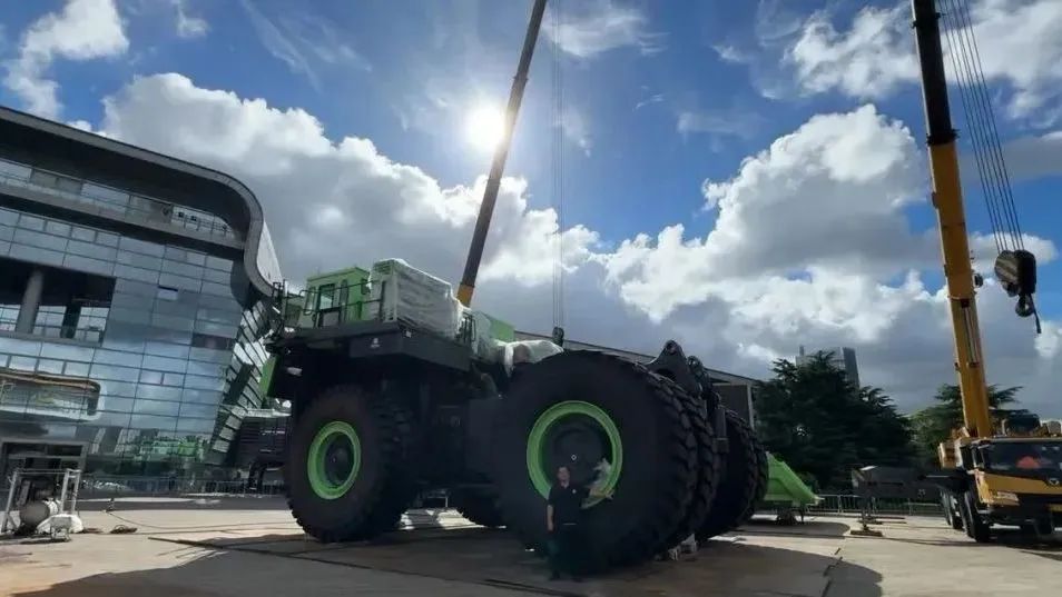 近日,在位于安亭鎮的上海汽車會展中心門口,一輛鋼鐵巨獸正在大型吊機下拼裝——這是由上海氫通能源集團與徐工集團聯合打造的260T氫能礦卡XDE260H。該車長14.748米、寬9.106米、高7.439米,光是車輪胎就高達3.7米。放眼望去,尚未安裝的148立方米翻斗像個巨型簸箕般斜靠在旁,頗為壯觀。