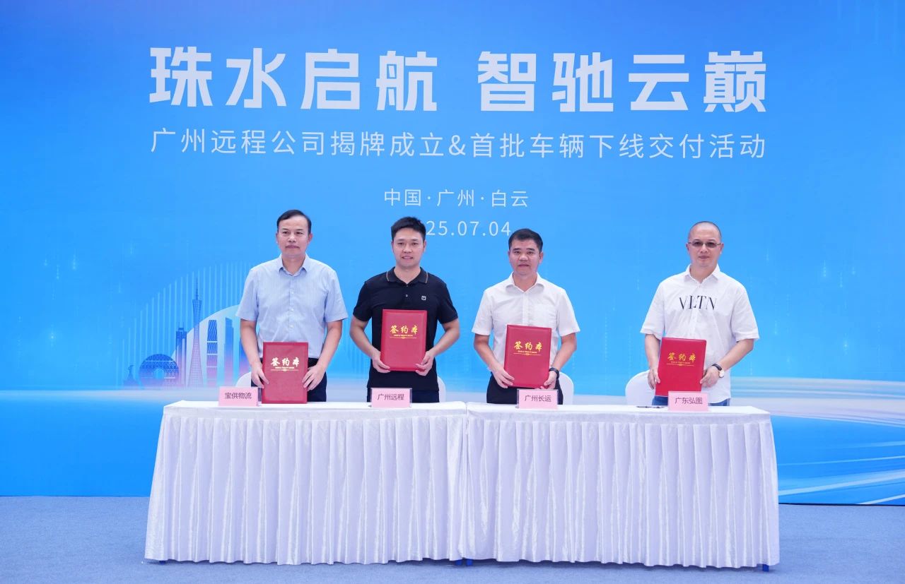 廣州市是遠程新能源商用車集團深耕華南市場的戰略支點,2024年8月遠程新能源商用車集團與廣州市白云區人民政府簽署合作協議,全力推動公交、出租、環衛、郵政、城市物流配送、特定場景用重型貨車等公共領域用車全面新能源化,共建醇氫電動汽車推廣應用示范區。此次廣州遠程新能源商用車公司的落戶和首批車輛交付,正是雙方合作的順利開局。活動現場,廣州遠程與廣州弘圖物流有限公司、廣州長運集團有限公司、寶供物流企業集團有限公司三家企業進行簽約,廣州遠程將協助簽約合作伙伴共同推動綠色物流轉型。