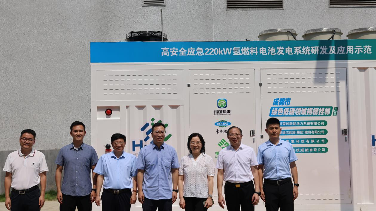 該項(xiàng)目由厚普清潔能源 (集團(tuán)) 股份有限公司、四川榮創(chuàng)新能動(dòng)力系統(tǒng)有限公司、成都集氫科技有限公司共同承擔(dān),是成都市科技局 “2024年綠色低碳領(lǐng)域揭榜掛帥項(xiàng)目—高安全220kW氫燃料電池應(yīng)急發(fā)電系統(tǒng)” 的重要成果。項(xiàng)目團(tuán)隊(duì)提前8個(gè)月完成了產(chǎn)品研制,并在微網(wǎng)優(yōu)聯(lián)科技(成都)有限公司舉行了隆重的產(chǎn)品發(fā)布儀式。