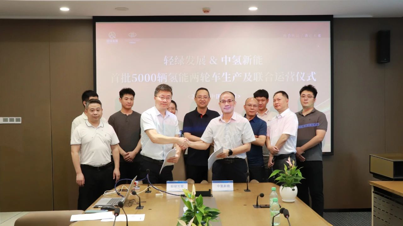 近日,中氫新能裝備制造(北京)股份有限公司與四川輕綠氫能源發(fā)展有限公司(以下簡“輕綠發(fā)展”)在四川省成都市舉辦首批5000輛氫能兩輪車生產及聯合運營儀式。中氫新能董事長周明強、裝備公司總經理石明華,四川輕綠氫能源發(fā)展有限公司董事長肖天林、總經理魏明用等領導共同為氫車生產及聯合運營儀式揭幕并簽署合作協議。中氫新能將以其先進的“技術研發(fā)+裝備制造”能力與輕綠發(fā)展豐富的市場運營實力深度融合,攜手打造城市氫能運營服務新模式,推動氫能兩輪車規(guī)模化、市場化、產業(yè)化發(fā)展。