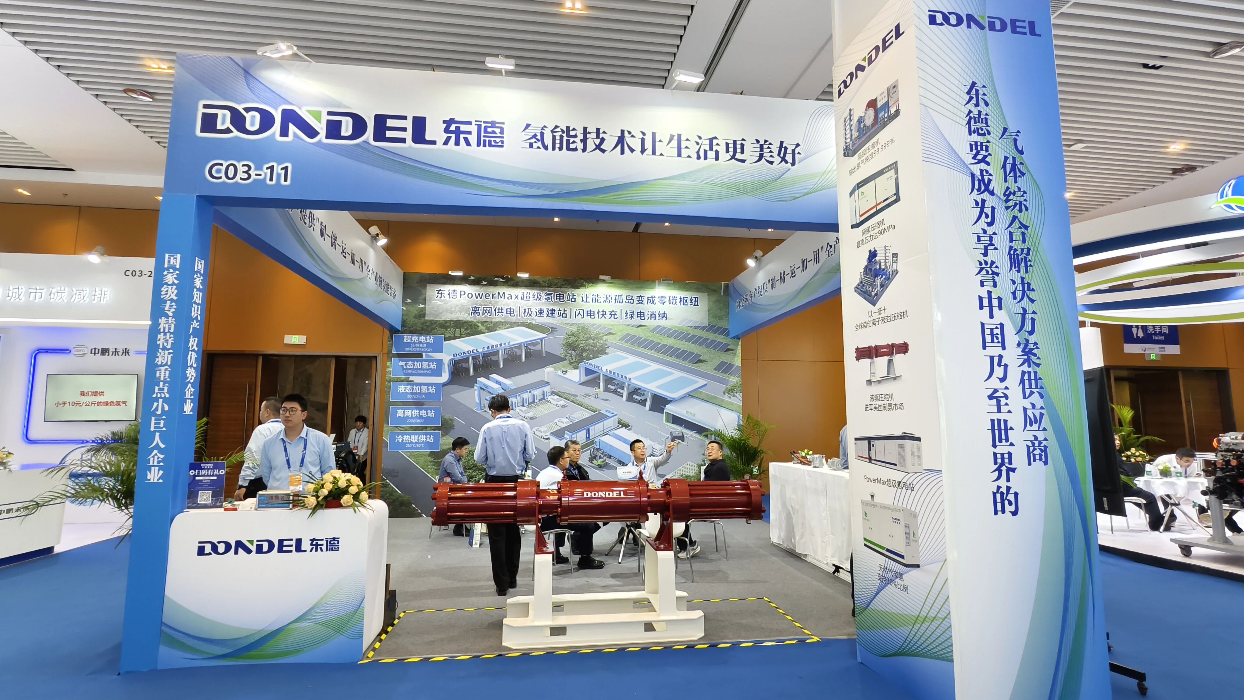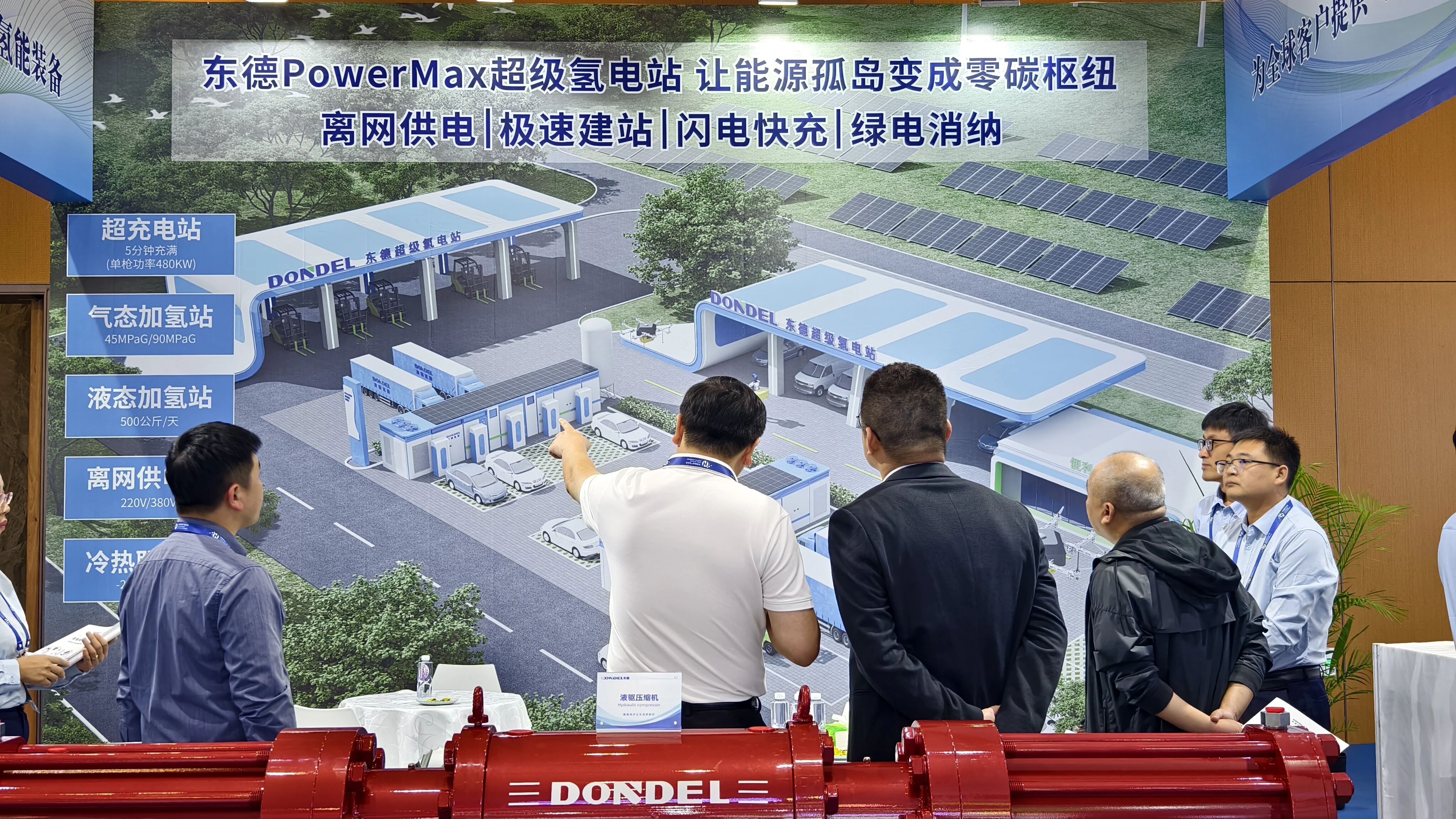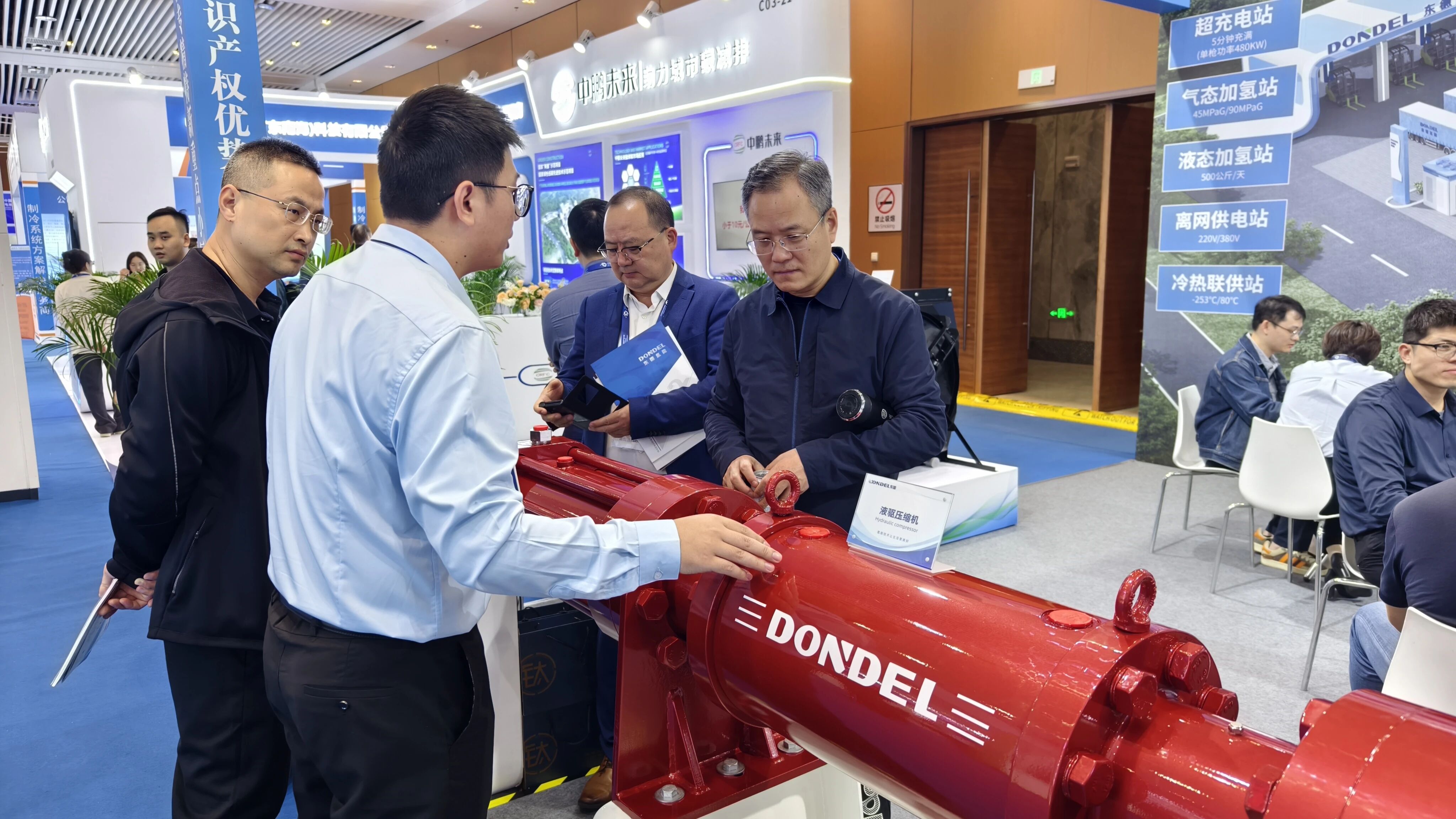 展會(huì)期間,東德展臺(tái)人流如織,吸引了眾多氫能運(yùn)營(yíng)商、車企、能源企業(yè)及科研機(jī)構(gòu)代表駐足交流。各方圍繞設(shè)備性能優(yōu)化、場(chǎng)景化定制方案、國(guó)際合作等議題展開深度探討。基于在壓縮機(jī)領(lǐng)域的深厚積累,東德已形成覆蓋“制、儲(chǔ)、運(yùn)、加、用”全鏈的多元解決方案,并成功應(yīng)用于海南最大綜合能源補(bǔ)給站、貴州六盤水氫能站、臨沂焦?fàn)t氣制氫等數(shù)十個(gè)國(guó)家級(jí)、省級(jí)示范項(xiàng)目,為鋼鐵、港口、交通等領(lǐng)域的綠色轉(zhuǎn)型提供堅(jiān)實(shí)支撐。