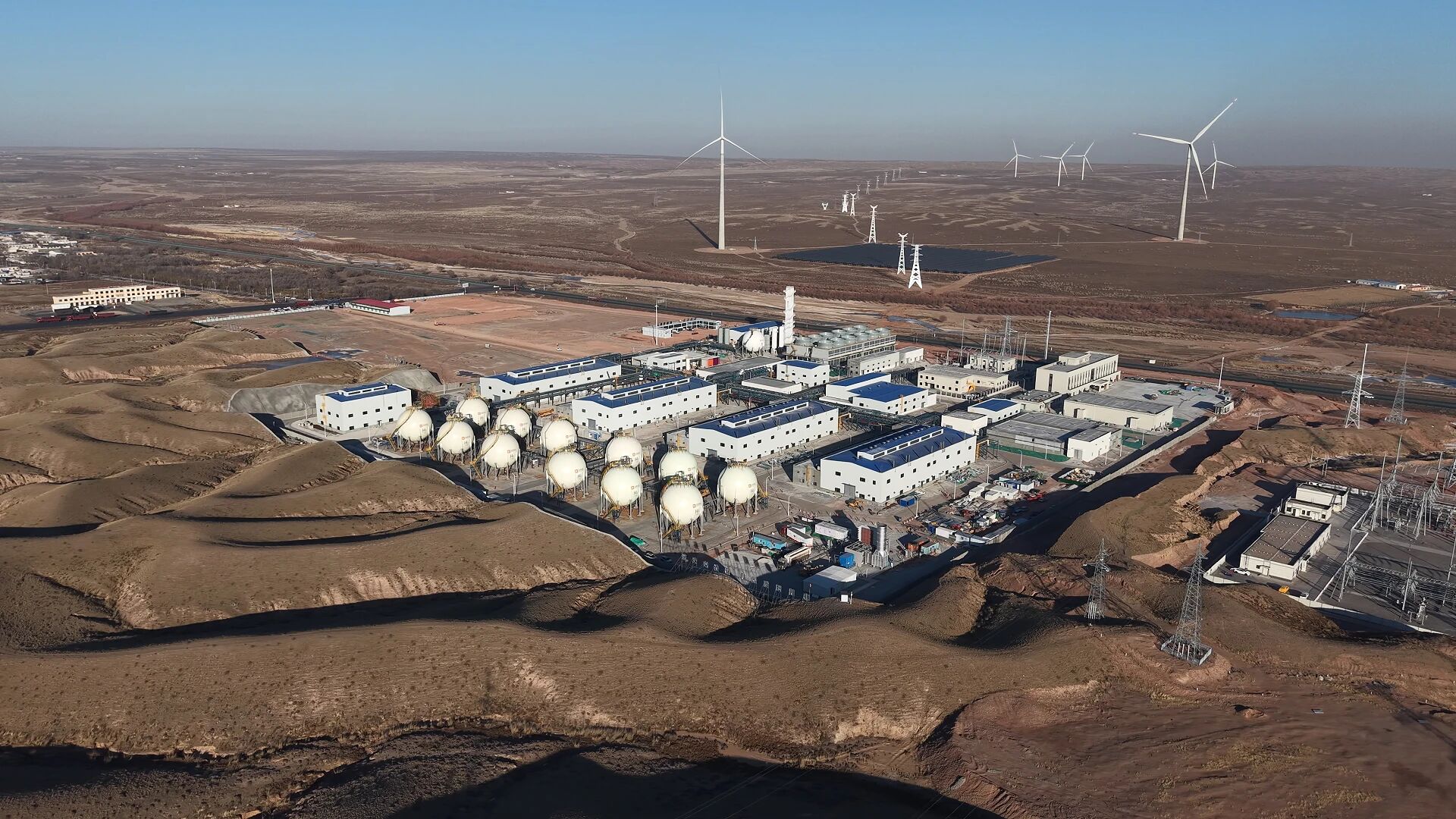 該項目位于內(nèi)蒙古重要能源化工基地——鄂托克棋盤井工業(yè)園區(qū)。作為深圳能源鄂托克旗505MW風光制氫合成綠氨項目的配套工程,項目深度融合風電、光伏、電解水制氫系統(tǒng),構(gòu)建了“綠電制綠氫,綠氫再發(fā)電”的“電-氫-電”能源轉(zhuǎn)化模式,項目綠氫綠氨產(chǎn)品符合歐盟ISCC EU RFNBO標準,有效解決了新能源棄電難題,平抑可再生能源波動,消納富余電力,并為電網(wǎng)提供靈活調(diào)節(jié)能力,為構(gòu)建以新能源為主體的新型能源體系,提供了可落地、可推廣的一體化解決方案,已成功入選國家級首批能源領(lǐng)域氫能試點項目。