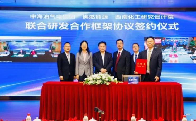 橇裝制氫裝備研發項目由佛燃能源、中海石油氣電集團有限責任公司(簡稱“氣電集團”)、西南化工研究設計院有限公司(簡稱“西南化工院”)三方組建研發聯合體推進實施。根據框架協議,三方將充分發揮氣電集團、佛燃能源和西南化工院各自在資源、市場和技術方面的優勢,共同致力于新型撬裝制氫裝置的技術開發、工程化及成果工程化應用,推動我國氫能核心技術和裝備的國產化邁向新臺階。簽署儀式上,與會各方一致認為,氫能是全球能源朝著清潔化轉型的重要方向,而橇裝天然氣制氫是貼近市場用戶,獲取低價、低碳氫源的重要路徑。氣電集團、佛燃能源、西南化工院在資源、市場和技術上均處于國內領先地位,此次強強聯合能夠實現“1+1+1>3”的共贏效應。