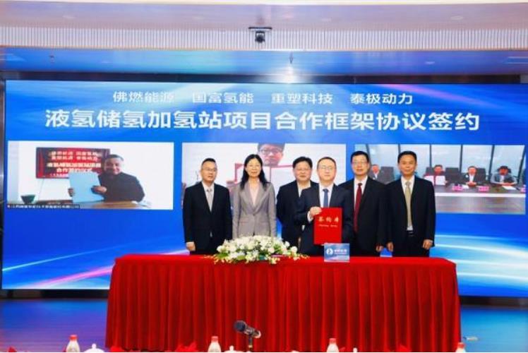 液氫儲氫加氫站項目由佛燃能源與江蘇國富氫能技術裝備股份有限公司(簡稱“國富氫能”)、上海重塑能源集團有限公司(簡稱“重塑能源”)、廣東泰極動力科技有限公司(簡稱“泰極動力”)等合作推進。根據協議,四方將發揮各自在液氫制-儲-運-加-用方面的優勢,推動建設三座液氫儲氫型加注站,采用國際先進、國內領先的工藝流程,不僅可以實現35/70MPa高壓加氫,還可升級至液氫加氫和深冷高壓加氫;可面向大功率、長續駛里程的所有燃料電池汽車車型,提供大流量快速加氫服務,日加氫量最高可達2000kg/天;同時開展自主液氫與深冷高壓技術和裝備的開發,引領中國液氫技術產業化實踐,加快推動中國高密度高效率的液氫儲運加注技術進步。