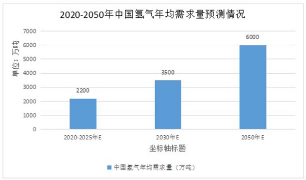 整體而言,中國(guó)氫能市場(chǎng)發(fā)展初期(2020-2025年左右),氫氣年均需求約2200萬(wàn)噸;氫能市場(chǎng)發(fā)展中期(2030年左右),氫氣年均需求約3500萬(wàn)噸;氫能市場(chǎng)發(fā)展遠(yuǎn)期(2050年左右),氫氣年均需求約6000萬(wàn)噸。