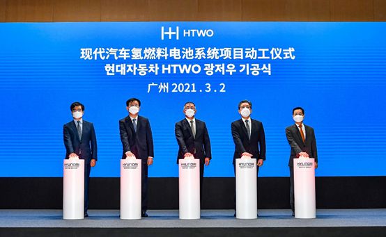 今年1月份,現代汽車集團在廣州成立了現代汽車氫燃料電池系統(廣州)有限公司。一個月后,3月2日,現代汽車集團全球首個海外氫燃料電池系統生產和銷售基地——“HTWO廣州”的動工儀式在廣州越秀國際會議中心舉行,根據規劃,HTWO工廠將在2022年完工,該工廠將主要生產搭載在現代氫燃料電池車NEXO上的氫燃料電池系統,初期規劃年產能6500套,并且可視中國政策和市場情況,持續擴大供應能力。