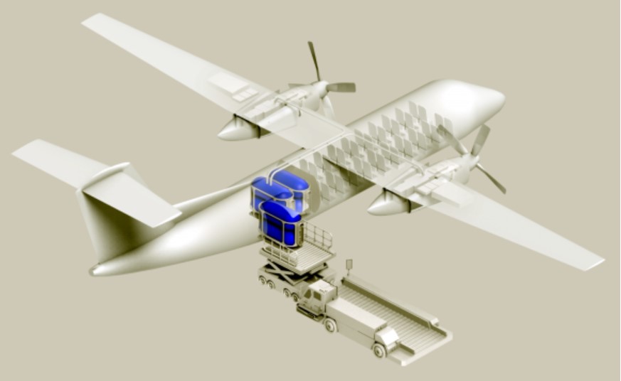 用于飛行的綠色氫氣將由通用氫公司的模塊化燃料庫提供,該燃料庫利用現有的貨物網絡和機場貨物處理設施,直接從生產地點向飛機運送氫氣,而不需要添加任何新的基礎設施。