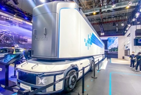此次展會的另一個亮點是搭載京星產品的49噸智能燃料電池重型卡車“Singsoo 1”。車輛配備一個12瓶組70Mpa車載氫儲存系統。在實際操作中,只需10多分鐘就可以氫化,射程可達近1000公里。此外,利用L4自動駕駛技術和智能網絡技術,實現車隊運行優(yōu)化和效率提高。