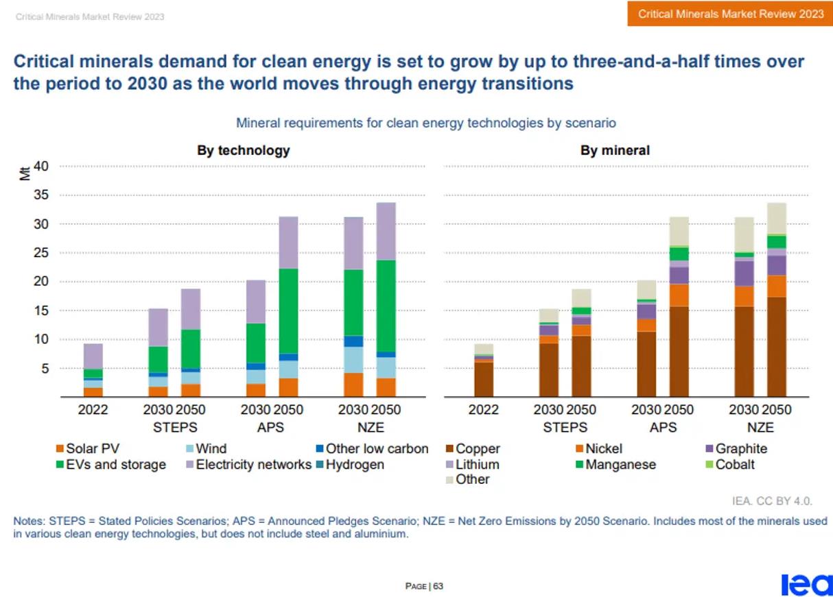 隨著需求的增加和價格的上漲,關鍵能源轉型礦物的市場規模在過去五年翻了一番,到2022年達到3200億美元。