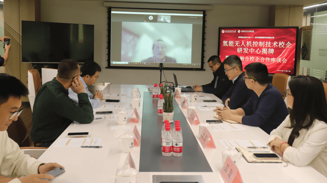 澳大利亞阿德萊德大學,歐洲科學院院士石碰教授(線上參加)、深職大智能科學與工程研究院執行院長盧山教授、智能科學與工程研究院研究員林鴻、汽車與交通學院無人機教師代表李鵬、卓翼智能董事長任雪峰、總經理耿學中等領導出席本次活動,共同見證“ 氫能無人機控制技術研發中心”的落成。