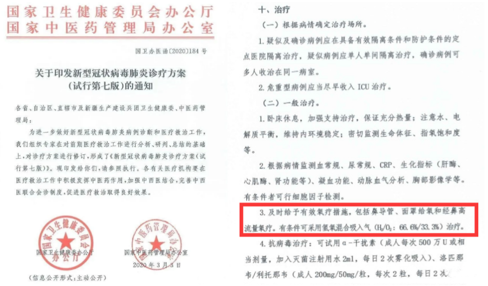 1、氫氣寫入中國新型冠狀病毒肺炎診療方案