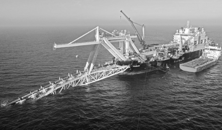 這是2018年11月15日的資料照片,顯示北溪2號項目的天然氣管道正在鋪設(shè)到波羅的海德國水域的海床。