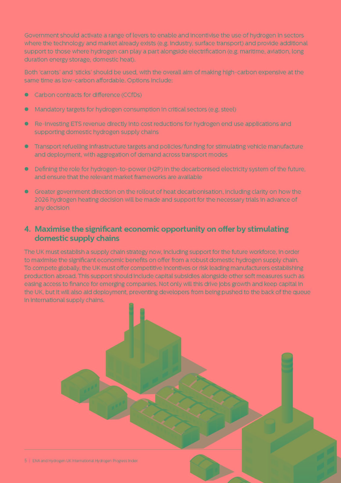 報告指出:“危險在于,英國將無法建立健全的國內供應鏈,被迫排在國際供應商的后面,從而進一步減緩部署和脫碳努力,錯失由此帶來的經濟效益?!盓NA和Hydrogen UK的成員建議英國在生產支持方面采取更快、更靈活的行動,并表示:“作為一項緊急事項,政府應該通過《能源法案》,制定可投資的生產商業模式,并建立適當的收入增加機制。”