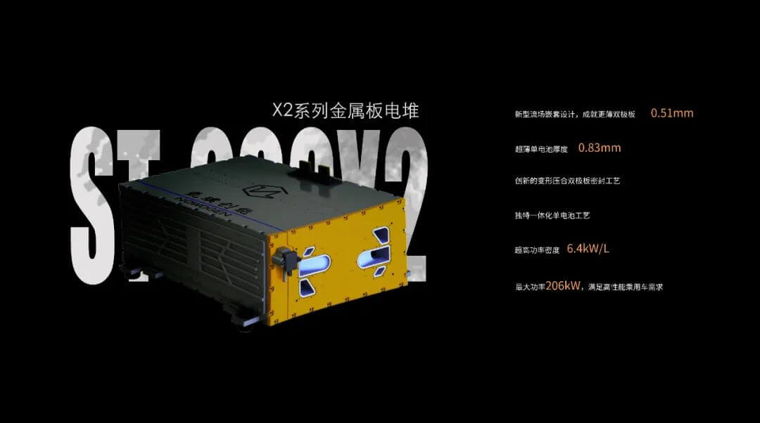 本次推出的產(chǎn)品(ST300VI)是全球首款300kW碳復(fù)合板電堆與高功率密度200KW金屬板電堆,采用了行業(yè)最先進的工藝技術(shù),擁有高功率、長壽命、國產(chǎn)化程度高等特點,且各項參數(shù)指標(biāo)在世界范圍內(nèi)處于絕對領(lǐng)先地位。可廣泛應(yīng)用于重卡、船舶、固定發(fā)電等傳統(tǒng)場景,還可應(yīng)用于軌道交通、港口、儲能等新興場景。它是氫璞12年研發(fā)的結(jié)晶之作。也是至今為止正式發(fā)布的最大功率的質(zhì)子交換膜燃料電池電堆。