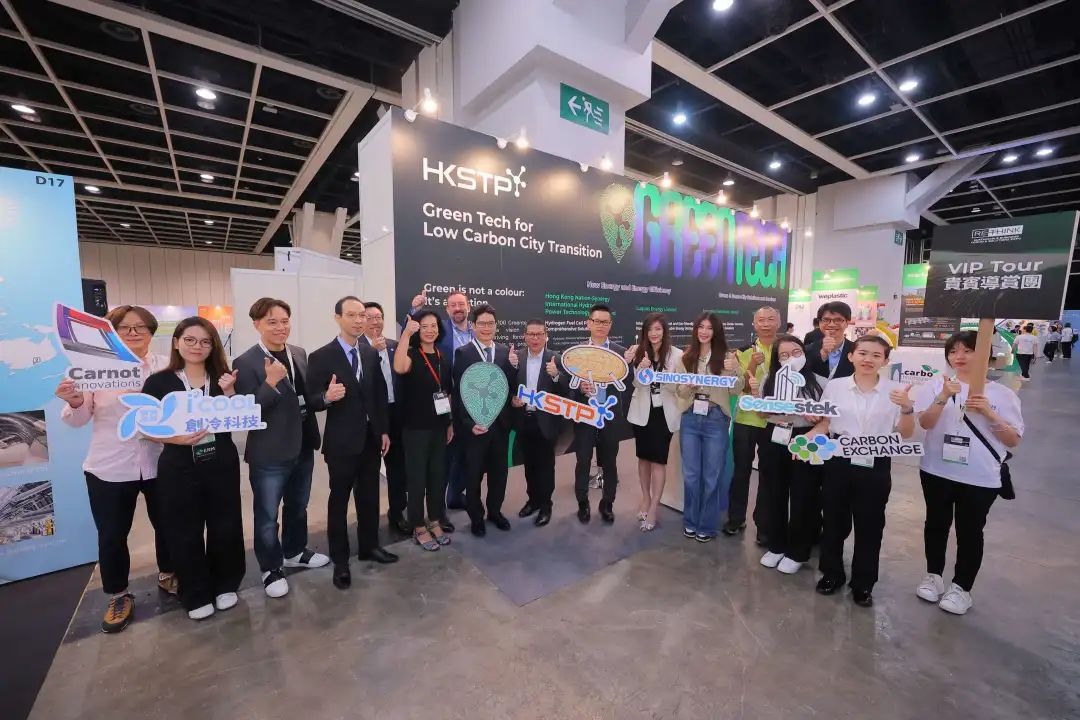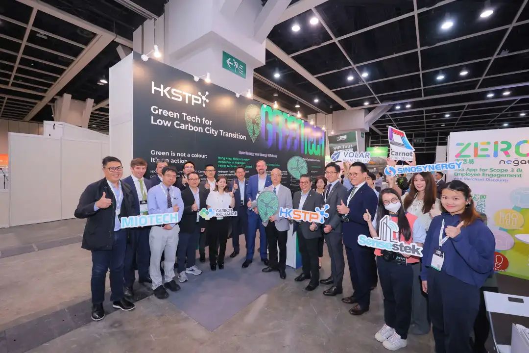 ▲ 香港環境及生態局局長謝展寰、財政司副司長黃偉綸、香港科學園CEO黃克強等多位領導蒞臨展臺交流
