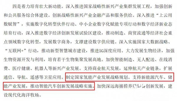 《報告》在2020年國民經濟和社會發展計劃的主要任務中提出,制定國家氫能產業發展戰略規劃。支持新能源汽車、儲能產業發展,推動智能汽車創新發展戰略實施。