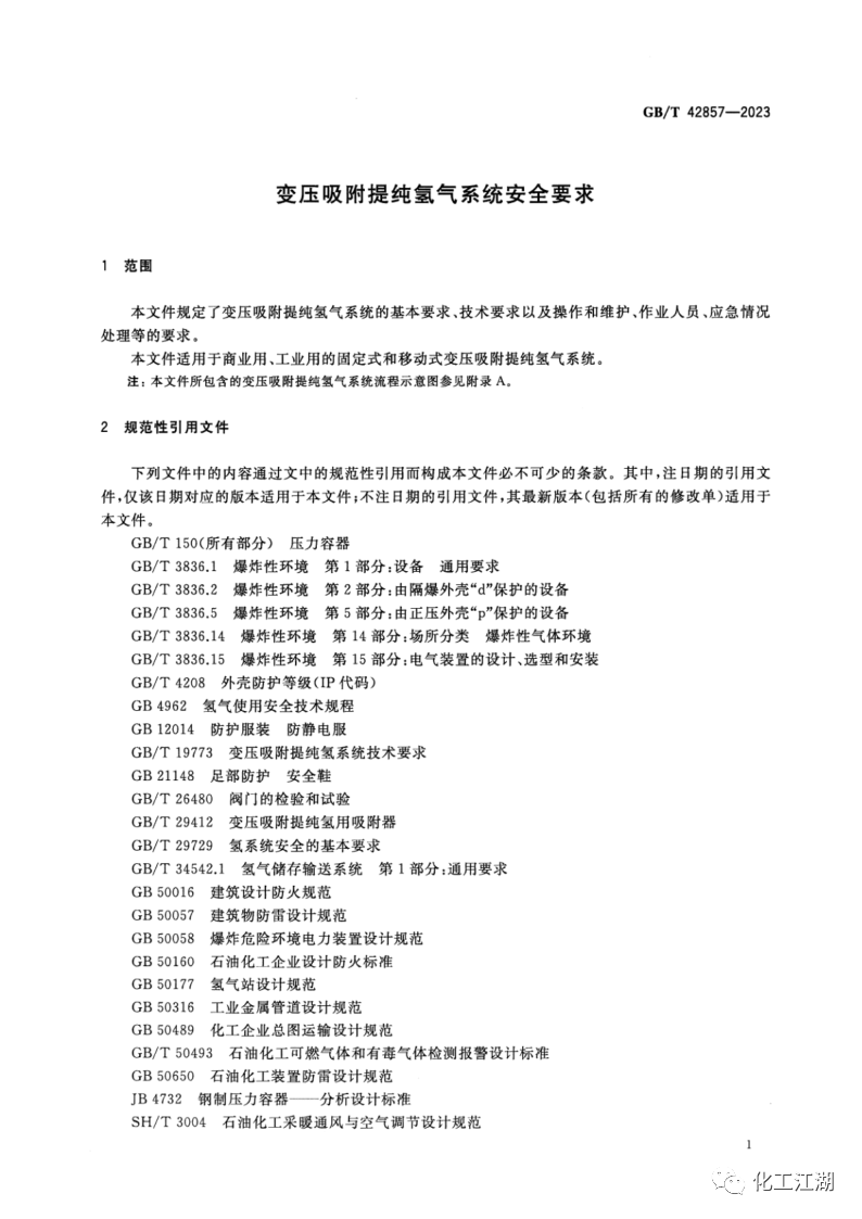 由佳安氫源參與編寫的國標《變壓吸附提純氫氣系統安全要求》與2023年12月1日正式實施,該項標準由TC309(全國氫能標準化技術委員會)歸口 。該項標準規定了變壓吸附提純氫氣系統的基本要求、技術要求以及操作和維護、作業人員、應急情況處理等的要求。本文件適用于商業用、工業用的固定式和移動式變壓吸附提純氫氣系統。