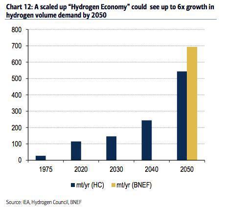 越來越多的國家簽署了到2050年實現碳零排放的具有法律約束力的承諾,美銀美林認為,要實現這一目標,唯一可行的清潔分子就是氫。