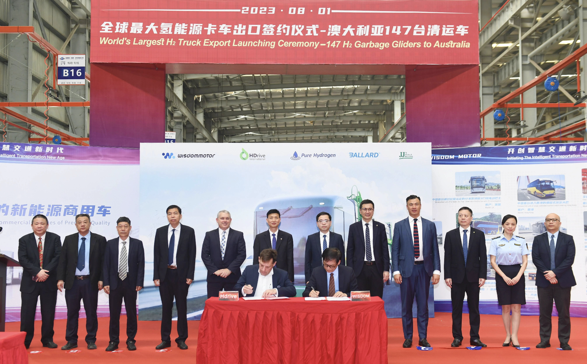 8月1日,威馳騰舉行了全球最大的氫能源卡車出口簽約儀式,此次共簽訂了147臺氫能源動力清運(yùn)車。